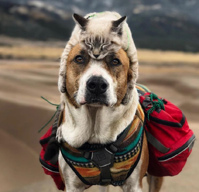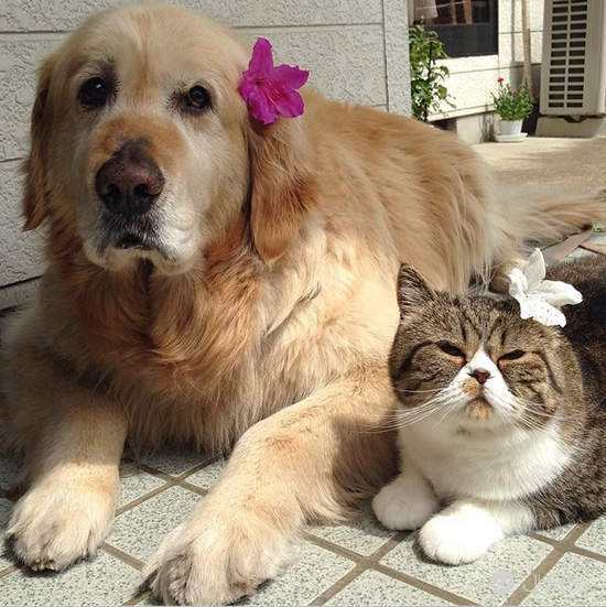这只大金毛最好的朋友没有办法走路,于是它不管去哪儿都要背着它一起走~